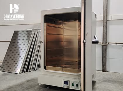 1、烘箱外殼一般采用薄鋼板制作,表面烤漆,工作室采用優質的結構鋼板制作。外殼與工作室之間填充硅酸鋁纖維。加熱器安裝底部,也可安置頂部或兩側。溫度控制儀表采用數顯智能表,PID調節:配置999.99小時時間控制器并與報警裝置相連接。使烘箱的操作更簡便,快捷與有效。